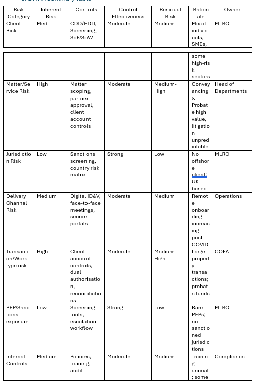 Example below shows a worked firm wide risk assessment: